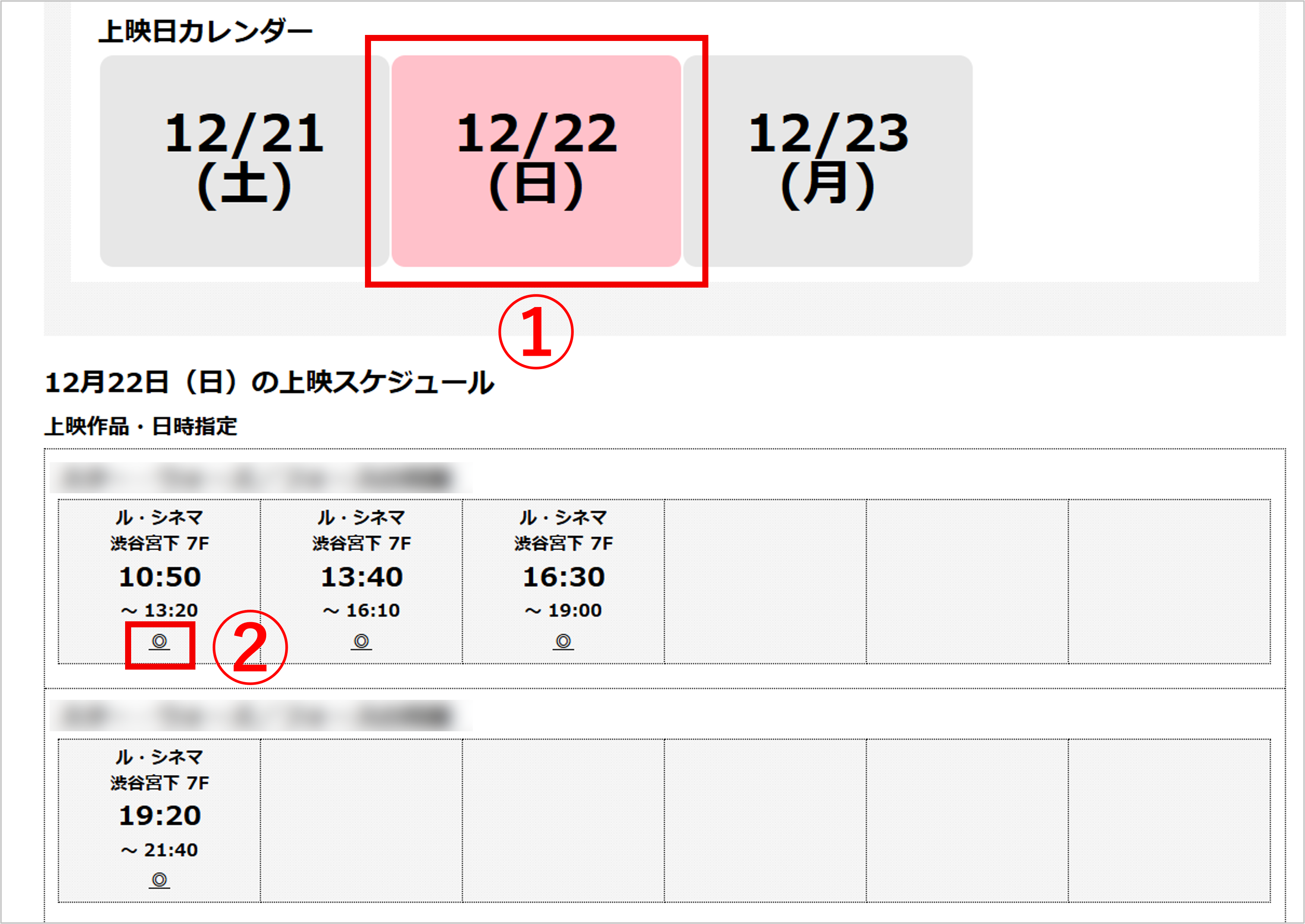 ①ご希望の鑑賞日を上映日カレンダーから選択してください。